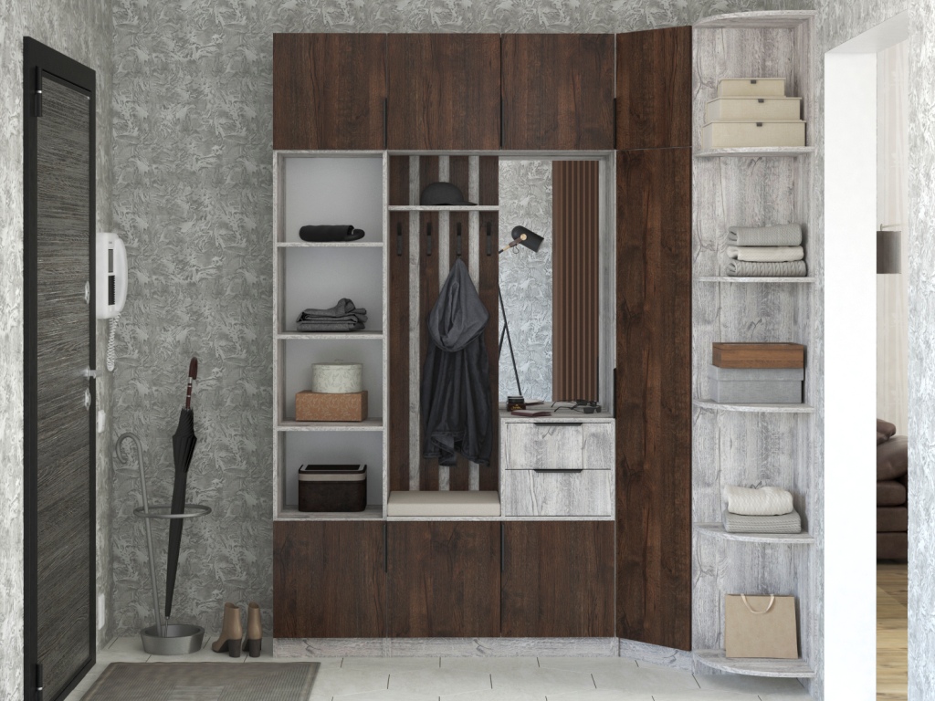 Во вкладке "Выбрать модули" Вы можете подобрать различные по комплектации шкафы, вешалки, угловой элемент. Модульная система поможет подобрать вам необходимые модули, с учетом размеров помещения, планировки.