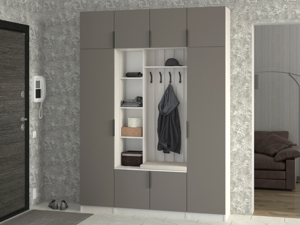 Во вкладке "Выбрать модули" Вы можете подобрать различные по комплектации шкафы, вешалки, угловой элемент. Модульная система поможет подобрать вам необходимые модули, с учетом размеров помещения, планировки.