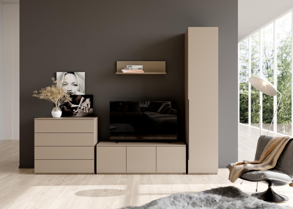 Во вкладке "Выбрать модули" Вы можете подобрать различные по комплектации шкафы, тумбы, комоды. Модульная система поможет подобрать вам необходимые модули, с учетом размеров гостиной, планировки.