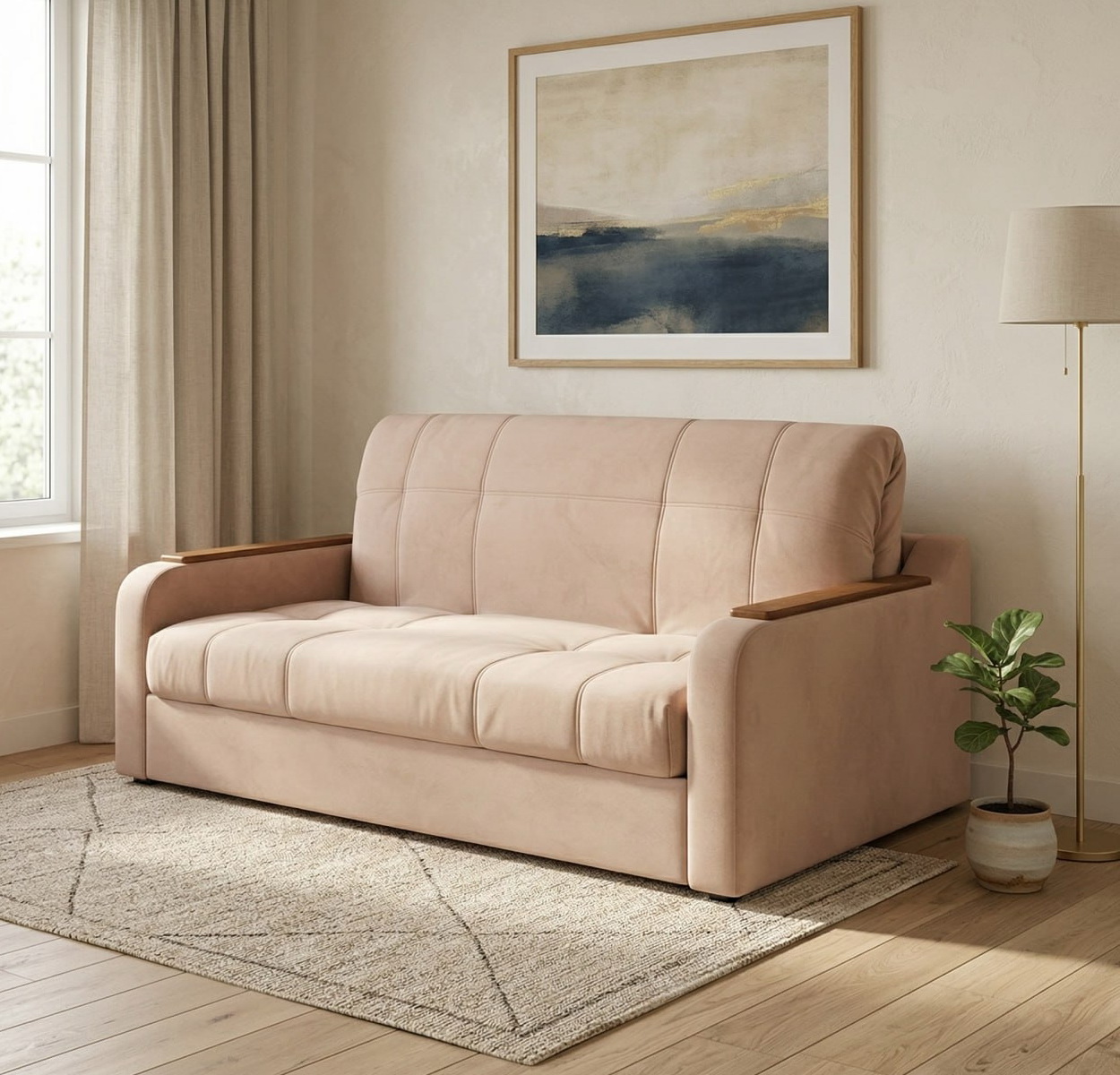 Диван аккордеон на металлокаркасе "Наполи" в цвете по фото (велюр макс беж 07) по цене от 33100 до 46100 рублей (в зависимости от выбора спального места). В остальном цена модели зависит от выбранной ценовой категории ткани (в таблице)