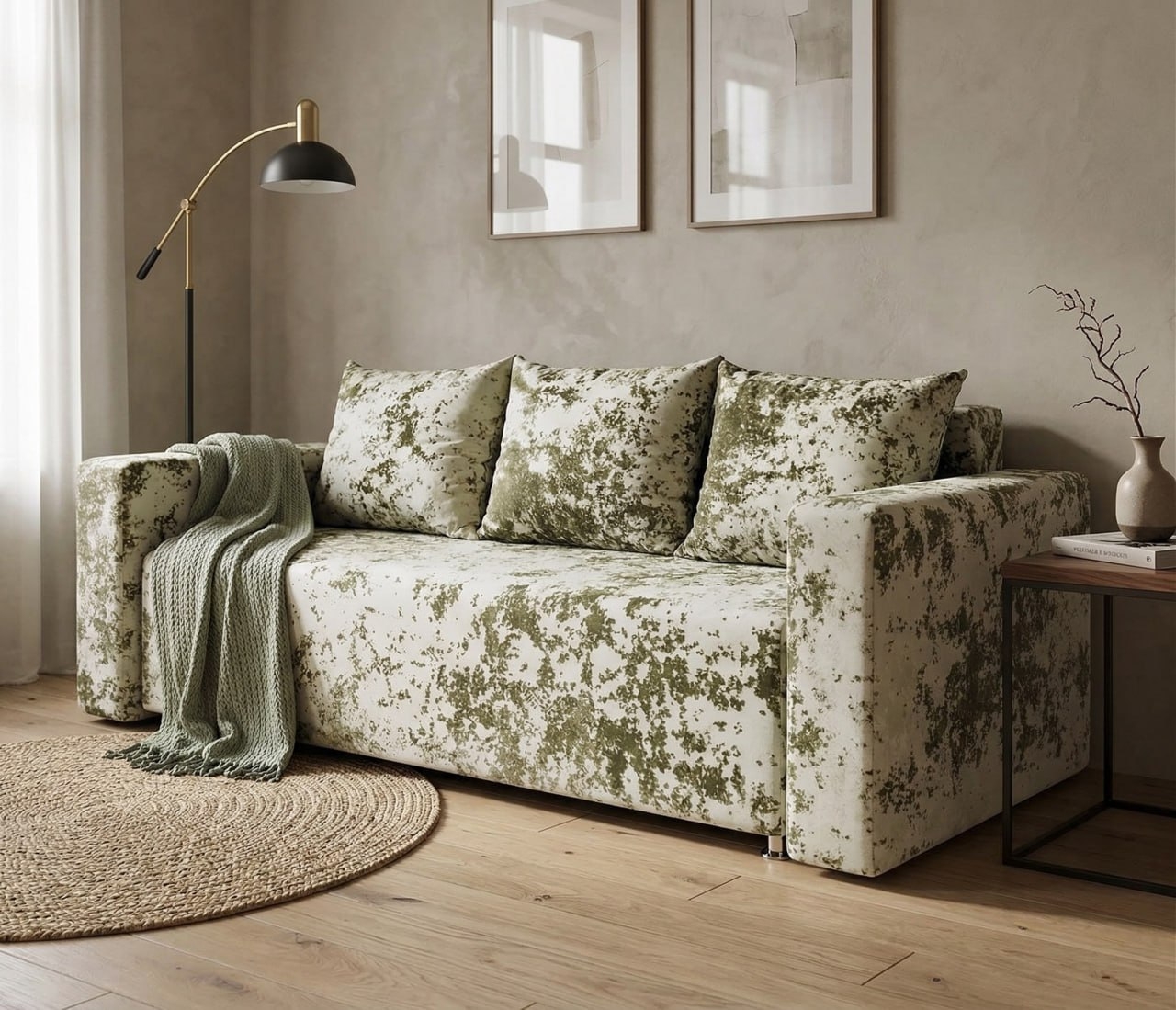 Диван еврокнижка "Лаунж" плюш бежевый